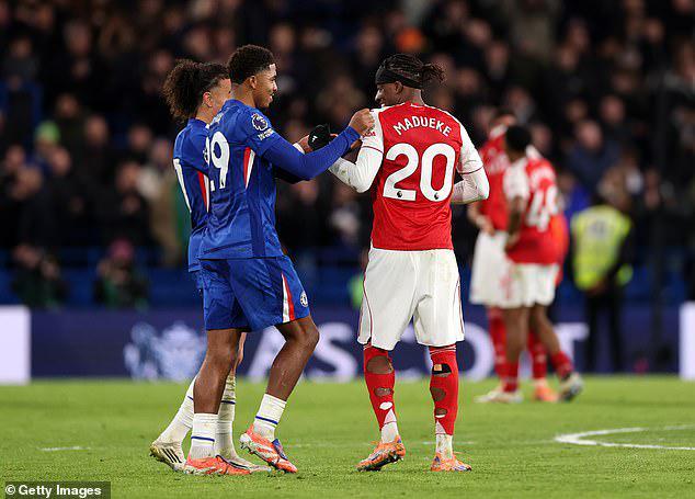 马杜埃凯从切尔西球员那里得到的冷遇似乎仅限于比赛本身。阿森纳球星在终场哨响后被切尔西队长里斯-詹姆斯拥抱。古斯托和韦斯利-福法纳等蓝军球员在激烈的伦敦德比结束后与马杜埃凯打招呼。